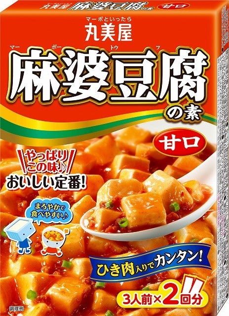 丸美屋食品工業株式会社(本社:東京都杉並区、社長:阿部豊太郎)は、「マーボといったら丸美屋♪」でおなじみの「麻婆豆腐の素」シリーズより、「麻婆豆腐の素<甘口>」と「麻婆豆腐の素<大辛>」を2023年1月からリニューアル発売いたします。