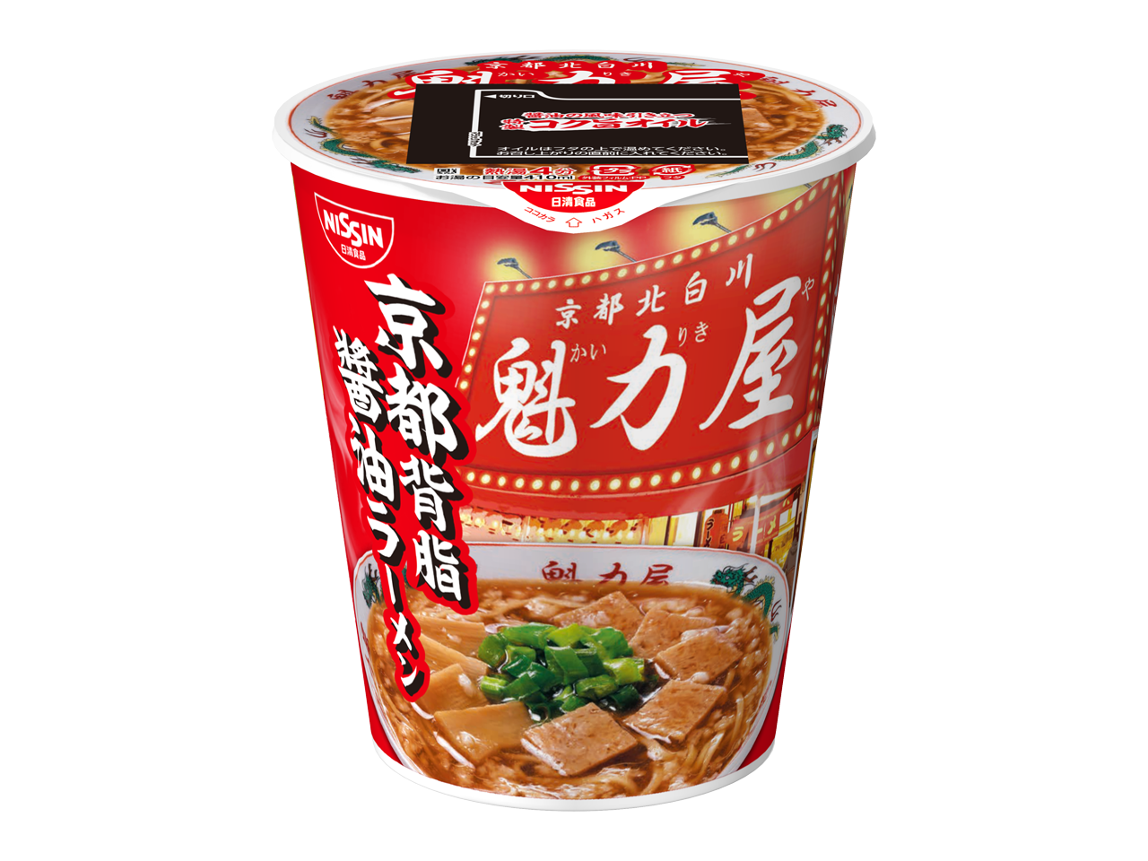 ラーメン魁力屋の看板商品をご家庭でお楽しみいただけるよう、カップ麺で登場した「京都背脂醤油ラーメン」。