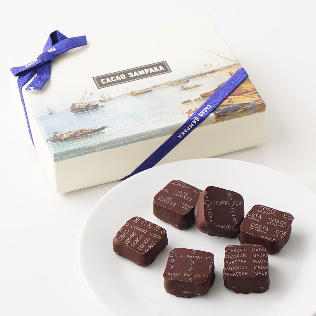 6ヶ国のカカオの原産地別ボンボンチョコレートを詰め合わせており、産地を旅するように、個性豊かな風味をお楽しみいただけます。
