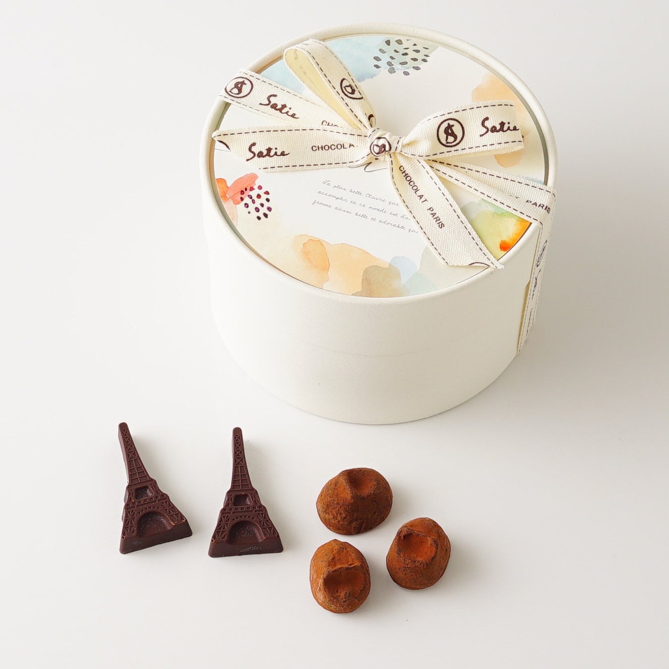 フランス製ショコラ専門店「サティー」のチョコレートの詰め合わせ。Cake.jp限定販売のバレンタイン商品です。以下の2種類のショコラを詰め合わせしています。
