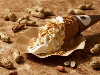 北海道産ミルクと八街産の落花生のハーモニーを贅沢に楽しめる、絶品なピーナッツソフトクリーム。ミルク味のソフトクリームにピーナッツショコラをあしらい、ピーナッツのダイスを散りばめました。コーンの底までピーナッツショコラが入っているので、最後の一口まで堪能していただけます。