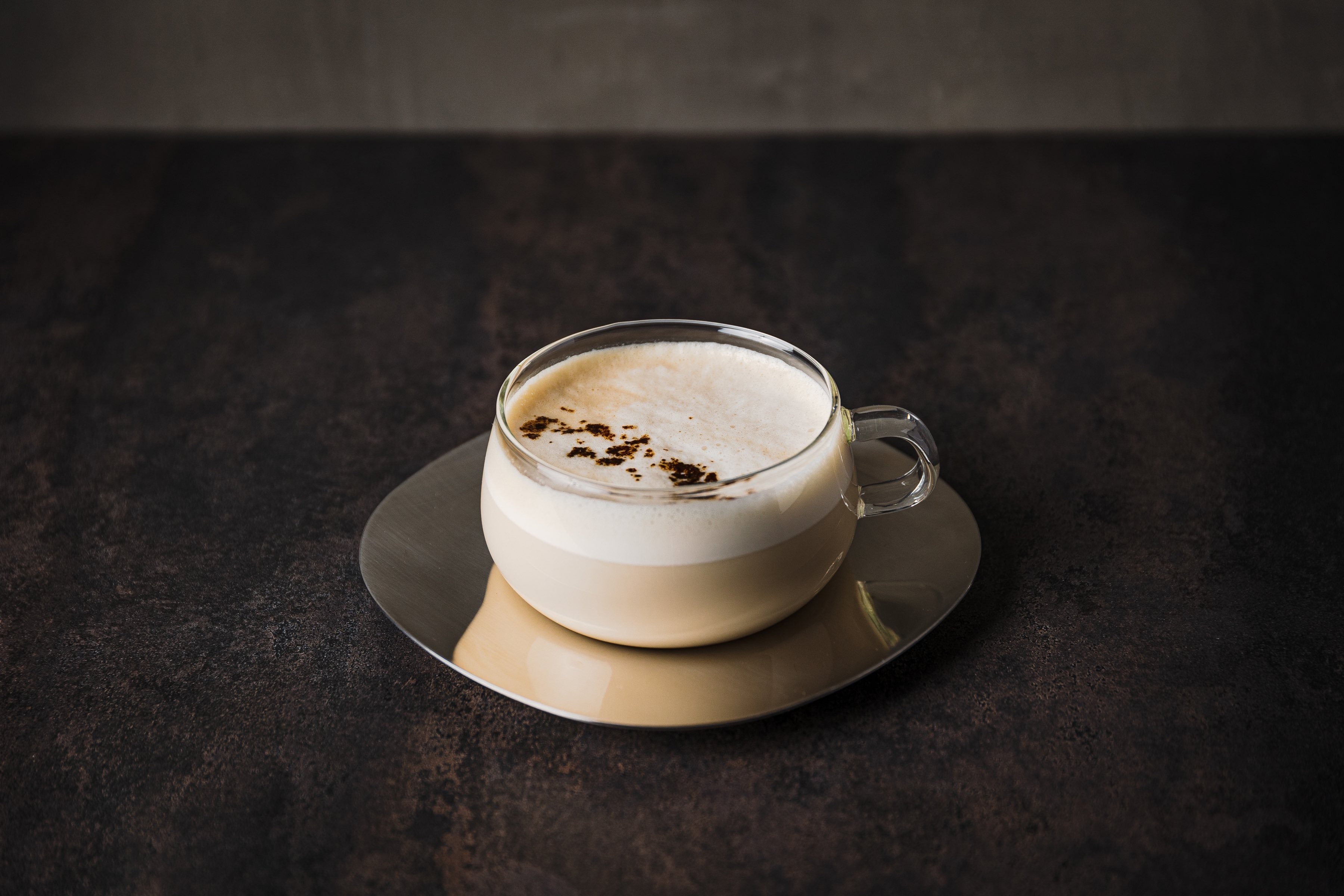 長野県の諏訪大社の境内にある1962年創業の宮坂酒造の名酒-真澄-の酒粕を使用し、フルーティな風味を損なわないように丁寧に煮込んだ特製の甘酒にエスプレッソの風味が特別なマリアージュを作ります。暖かい甘酒ラテをお楽しみください。