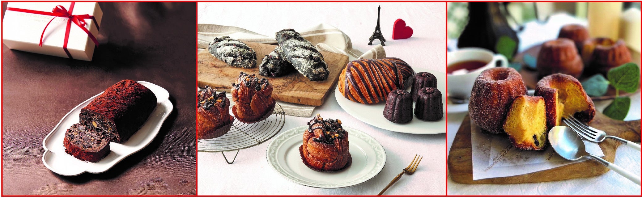 今回リベルテでは、フランスプレミアムブランド「カカオバリー®」のショコラを使った特別なパンやカヌレ等をご用意します。またドライフルーツやナッツとカカオバリー®のショコラをブレンドしたバレンタイン限定のシュトーレンや、17日(火)、21日(土)の2日間限定で、フランス アルザス地方の味わいをリベルテ流にアレンジした『アルチザン クグロフ』を提供いたします。フランスの上質な食材や伝統的な味わいを用いて、リベルテが京都の皆さまにお届けする、バレンタインにぴったりなおいしい幸せをお楽しみください。
