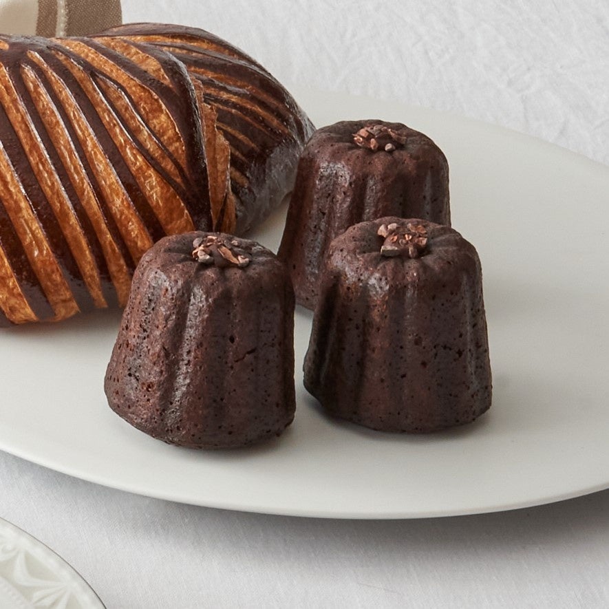 カカオバリー®の100%ピュアカカオフルーツから作られたショコラとフルーティでスパイシーな香りと力強い味わいのショコラを惜しみなく使用した、カリっともっちりカヌレです。