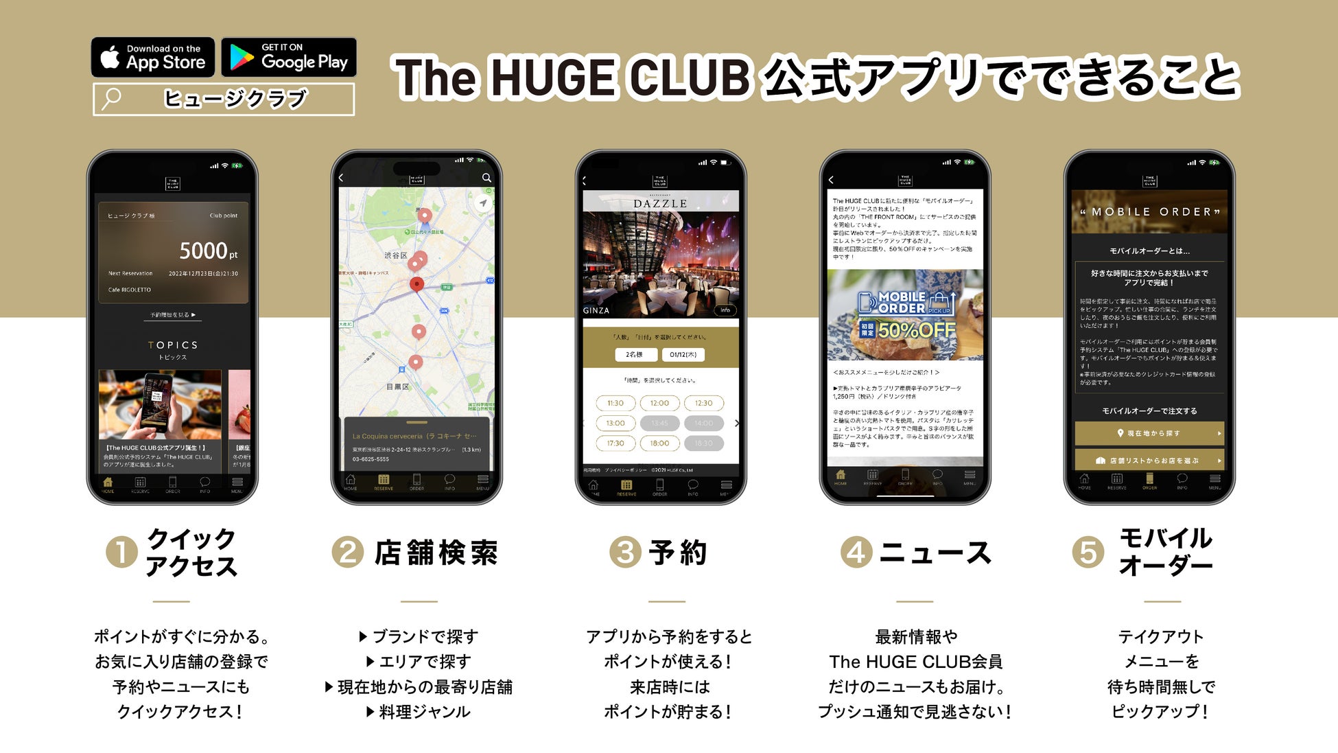 この機会に是非アプリをダウンロード頂き、The HUGE CLUBからのご予約・ご来店をお待ちしています。