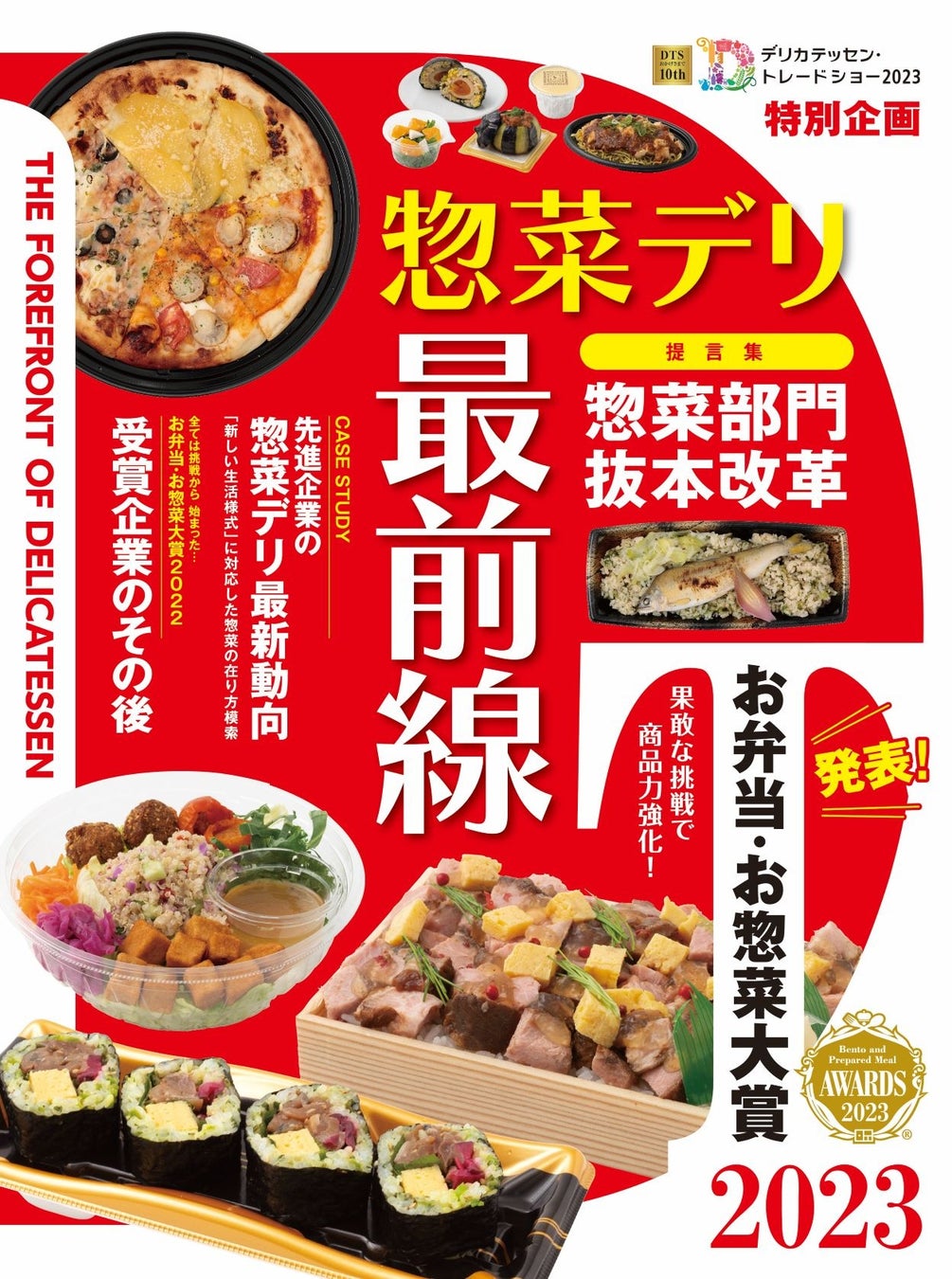また、受賞商品の紹介をはじめ、専門家・コンサルタント執筆による業界動向やトレンド、デリカに注力する小売業の販売現場や取り組み状況のリポートなど、お弁当・お惣菜に関する情報を満載した冊子「惣菜デリ最前線2023」を発行し、ブース内で無料配布いたします。
