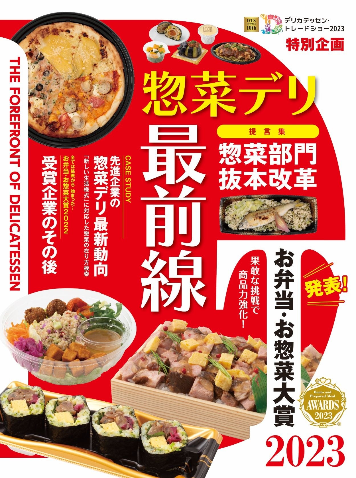 また、受賞商品の紹介をはじめ、専門家・コンサルタント執筆による業界動向やトレンド、デリカに注力する小売業の販売現場や取り組み状況のリポートなど、お弁当・お惣菜に関する情報を満載した冊子「惣菜デリ最前線2023」を発行し、ブース内で無料配布いたします。