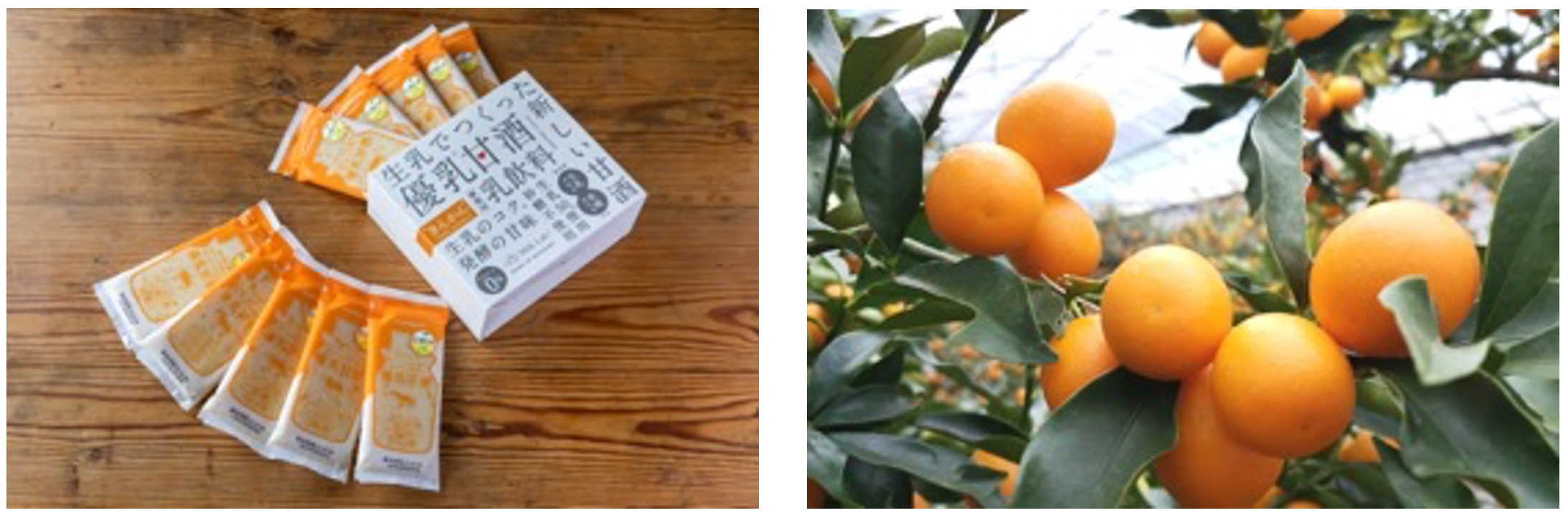 優乳甘酒に宮崎県特産の完熟きんかん「たまたま」を使用したフローズン甘酒を開発。宮崎大学と共同で加工方法等を検証し、免疫力向上が期待出来るβ-クリプトキサンチンを豊富に含むきんかんを配合した甘酒の製品化を実現しました。