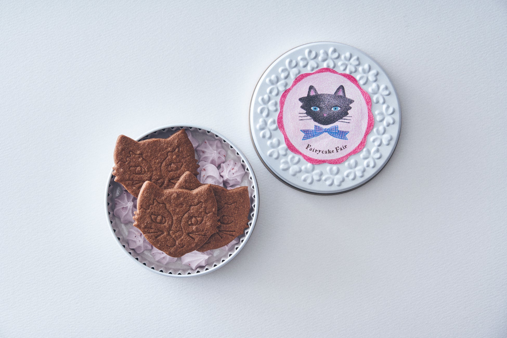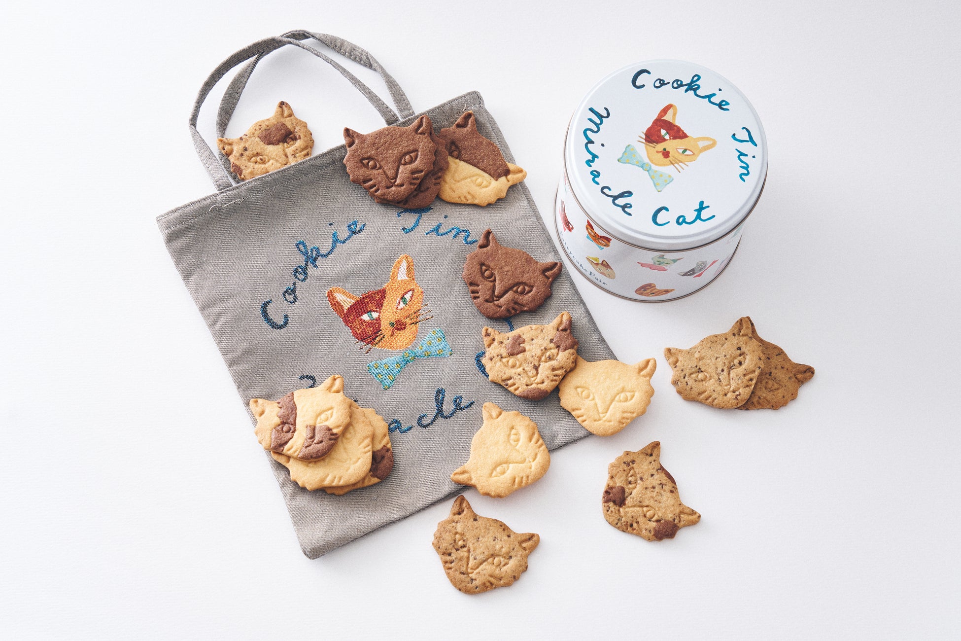 珍しい柄や不思議な模様をもつ「神様のいたずら」と呼ばれる猫たちをモチーフに、発酵バターやカカオ、チョコチップのクッキーがぎっしり入った可愛い缶と一緒に渡せるように2点セットで販売します。