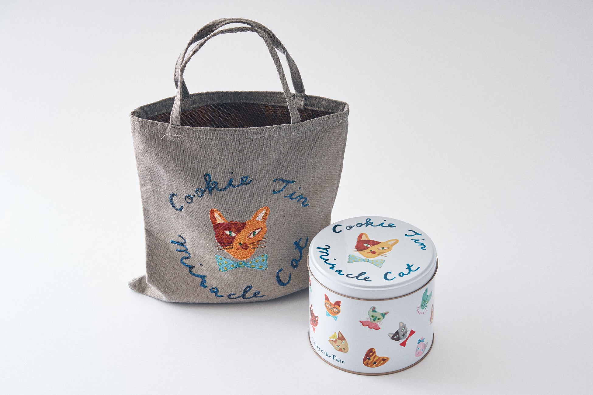 ○商品名称:ネコトートバッグ&Miracle Cat Cookie Tin (神様のいたずらネコクッキー缶)