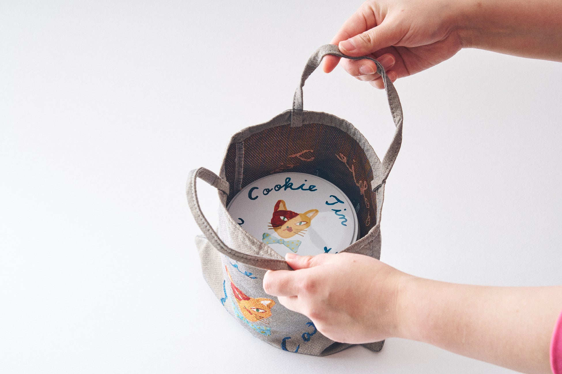 ミュージシャンの坂本美雨さんとイラストレーターの前田ひさえさんと一緒につくった大人気ネコクッキー缶「Miracle Cat Cookie Tin」のイラストを刺繍した「ネコトートバッグ」が新登場!