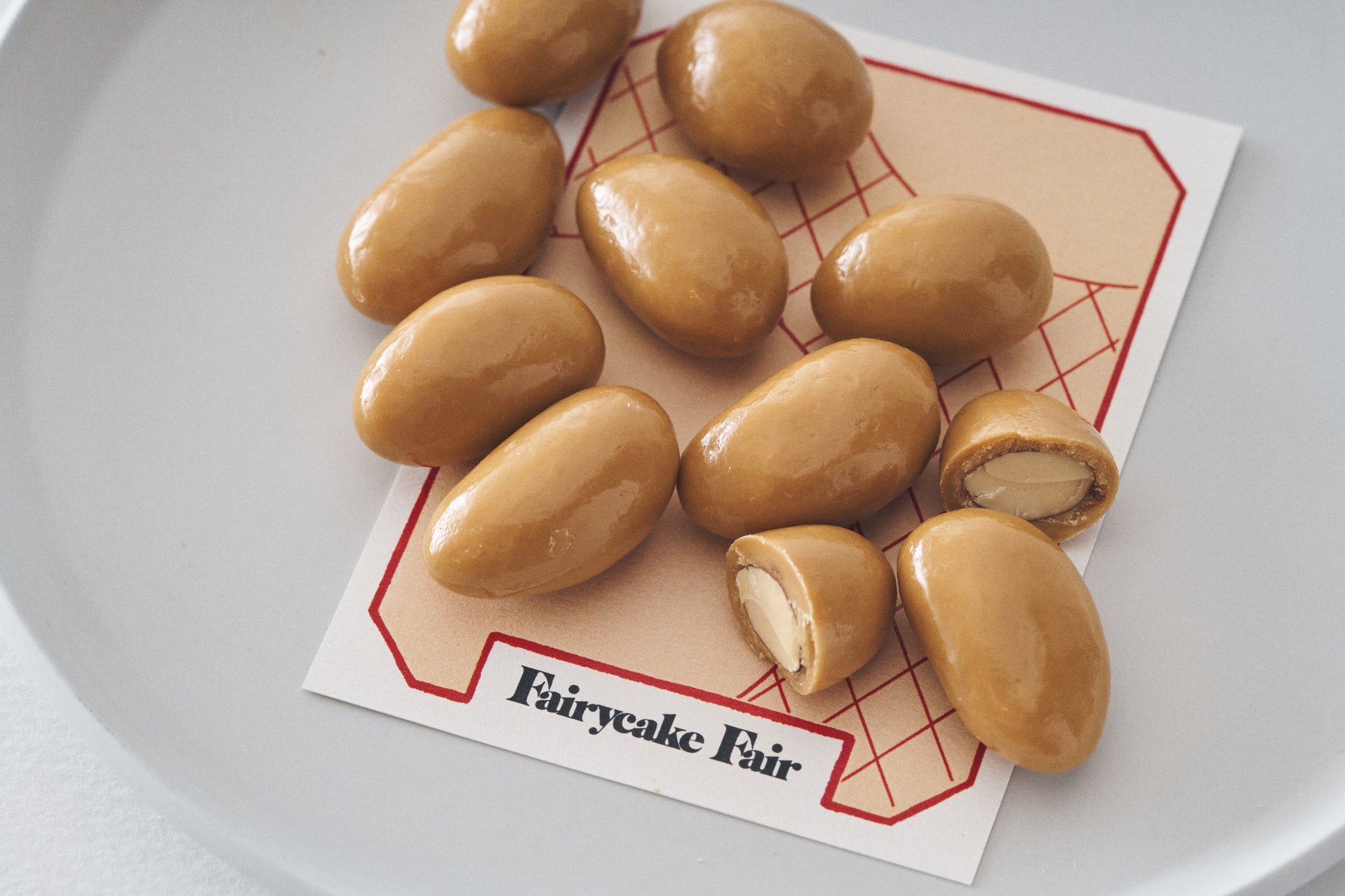 「アーモンドの女王」と呼ばれる、甘くて気品のある味わいの世界最高峰スペイン産マルコナ種のアーモンドを、フランスのチョコレートメーカーであるヴァローナ社が手掛けたブロンドチョコレートでコーティング。ブロンドチョコレートは、濃厚なミルク感とかすかな塩気、クッキーのような香ばしさが特徴。そのチョコレートでザクっと香ばしさのあるアーモンドを包み食べ応えも◎