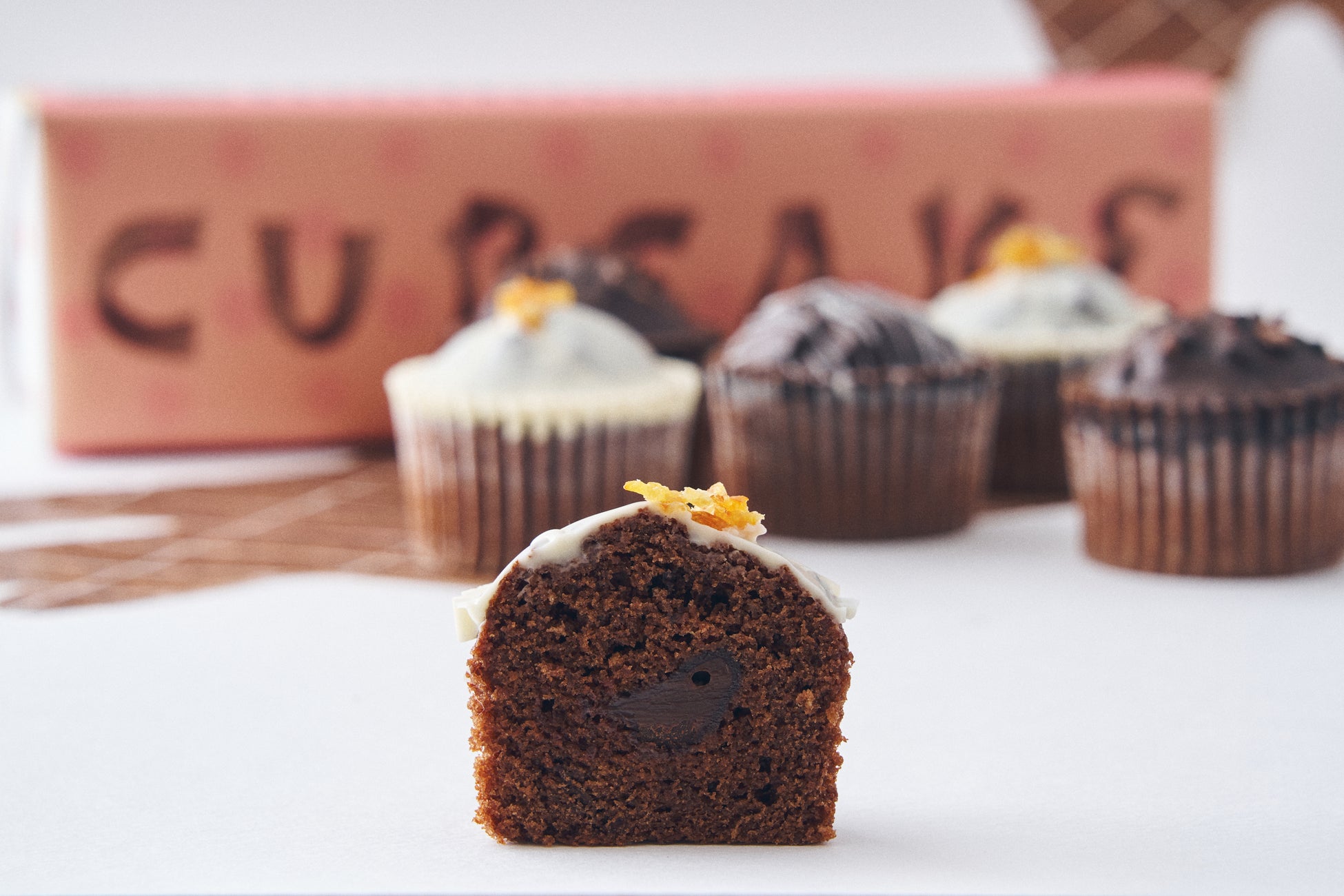 濃厚なショコラオランジュの焼き菓子カップケーキが冬季限定で登場。溶かしたチョコレートとカカオパウダーをたっぷりと混ぜ込んだ、カカオ味が濃いカップケーキです。オレンジの皮とチョコレートのかたまりを加え、より上品で華やかな味わいに仕立てました。カカオとオレンジの出会いにうっとりする贅沢な食べ心地が楽しめます。甘いものが苦手な方にも喜んでもらえるようにビターな味わいへと仕上げたチョコレートのお菓子です。