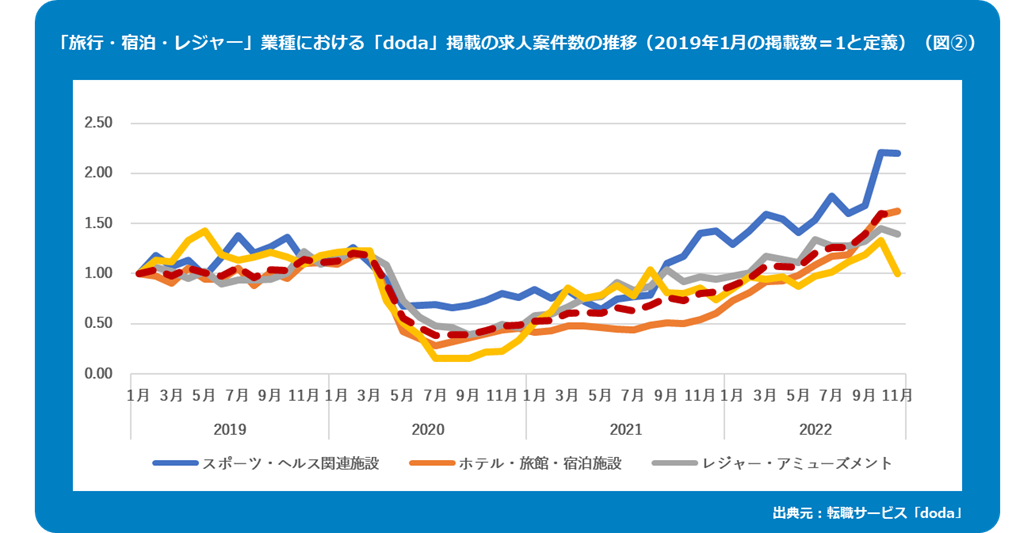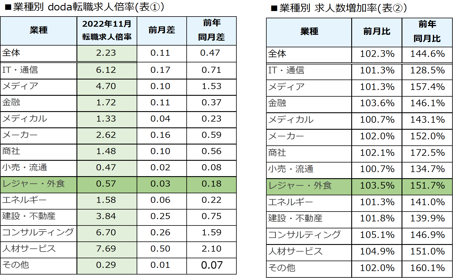 パーソルキャリア株式会社が運営する、転職サービス「doda(デューダ)」(編集長:大浦 征也)は、2022年11月のレジャー・外食業界の転職求人倍率をまとめた「業界版doda転職求人倍率」を発表いたします。