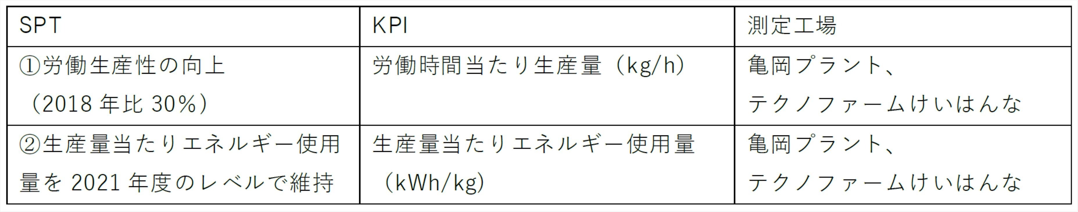 - 今般スプレッドはSLLを調達し、技術力と効率性の向上を求めて自社直営工場における労働生産性とエネルギー生産性を示すKPIとSPTを設定した。この目標を社内の取り組みの励みとし、さらなる事業の増強を企図する。