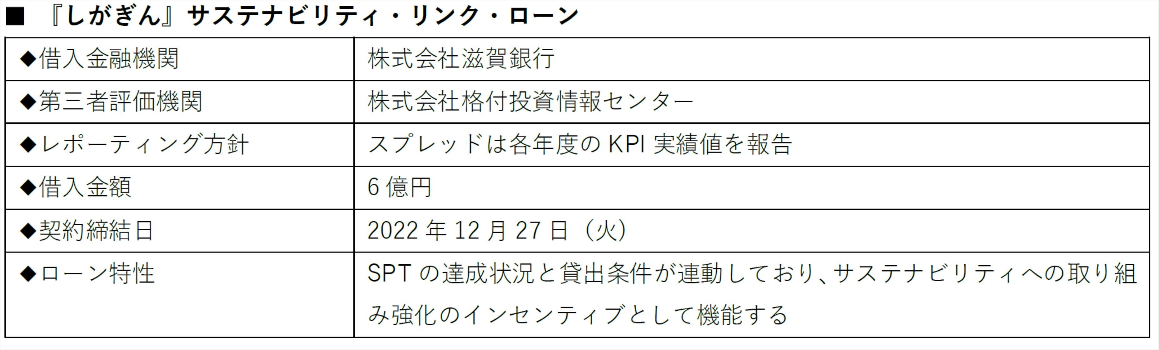 株式会社スプレッド(本社:京都市下京区、代表取締役社長:稲田 信二)は、株式会社滋賀銀行(本店:滋賀県大津市、取締役頭取:高橋 祥二郎)と2022年12月27日(火)にサステナビリティ・リンク・ローン(以下、SLL)契約を締結し、総額6億円の資金を調達しました。国内で植物工場を主な事業として手掛ける事業者向けでは、初の案件となります。