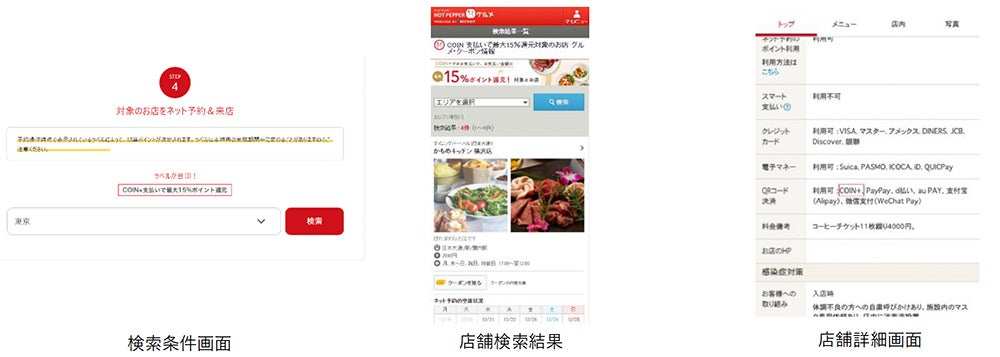 ・『ホットペッパーグルメ』×『COIN+』決済キャンペーンサイトから『COIN+』支払い対象グルメ店舗の一覧が表示可能