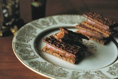 厳選した3種のチョコレートに、豊かなアロマがチョコレートとの相性のいいマルサラワインと果肉感がアクセントとなるフィグを合わせてガナッシュにし、ザクザク食感のクランチショコラ、香ばしく焼き上げたサブレを重ね合わせて仕立てました。食感の異なる3層の味わいが織りなすマリアージュをお楽しみいただける逸品です。