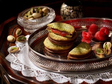 ラズベリーソースをミルクチョコレートでコーティングし、さっくりと焼き上げたピスタチオクッキーでサンドした、これからの季節にぴったりのショコラサンドです。ピスタチオクッキーの濃厚な旨味と、ラズベリーソ―スの爽やかな酸味が織りなすハーモニーが特徴です。