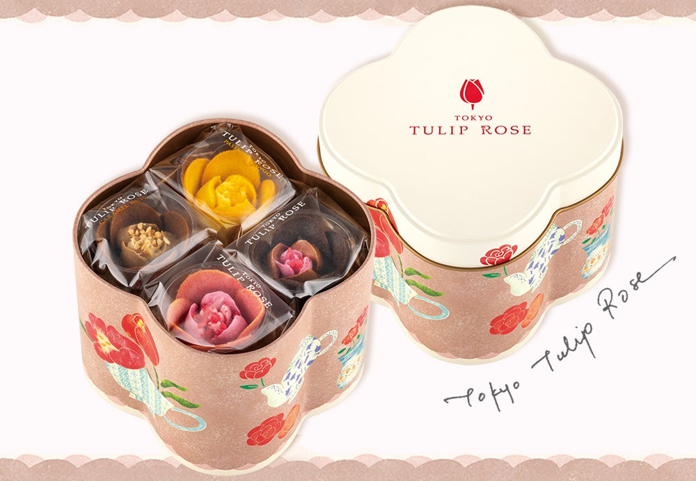 「チューリップローズ」全4フレーバーを一度に楽しめるスペシャル缶『チューリップローズ ティータイム缶』も新登場!甘酸っぱい『ベリー』、コク深い『キャラメルナッツ』、フルーティーな『パッションマンゴー』に、最新作『ショコラカシス』を詰合せたよくばりセットです。中のお菓子を食べ終わったあとも飾ったり小物入れにしたり、いろいろ楽しめます。