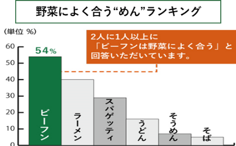 ②野菜によく合う❝めん❞ランキング1位のビーフンで野菜不足の解消に貢献