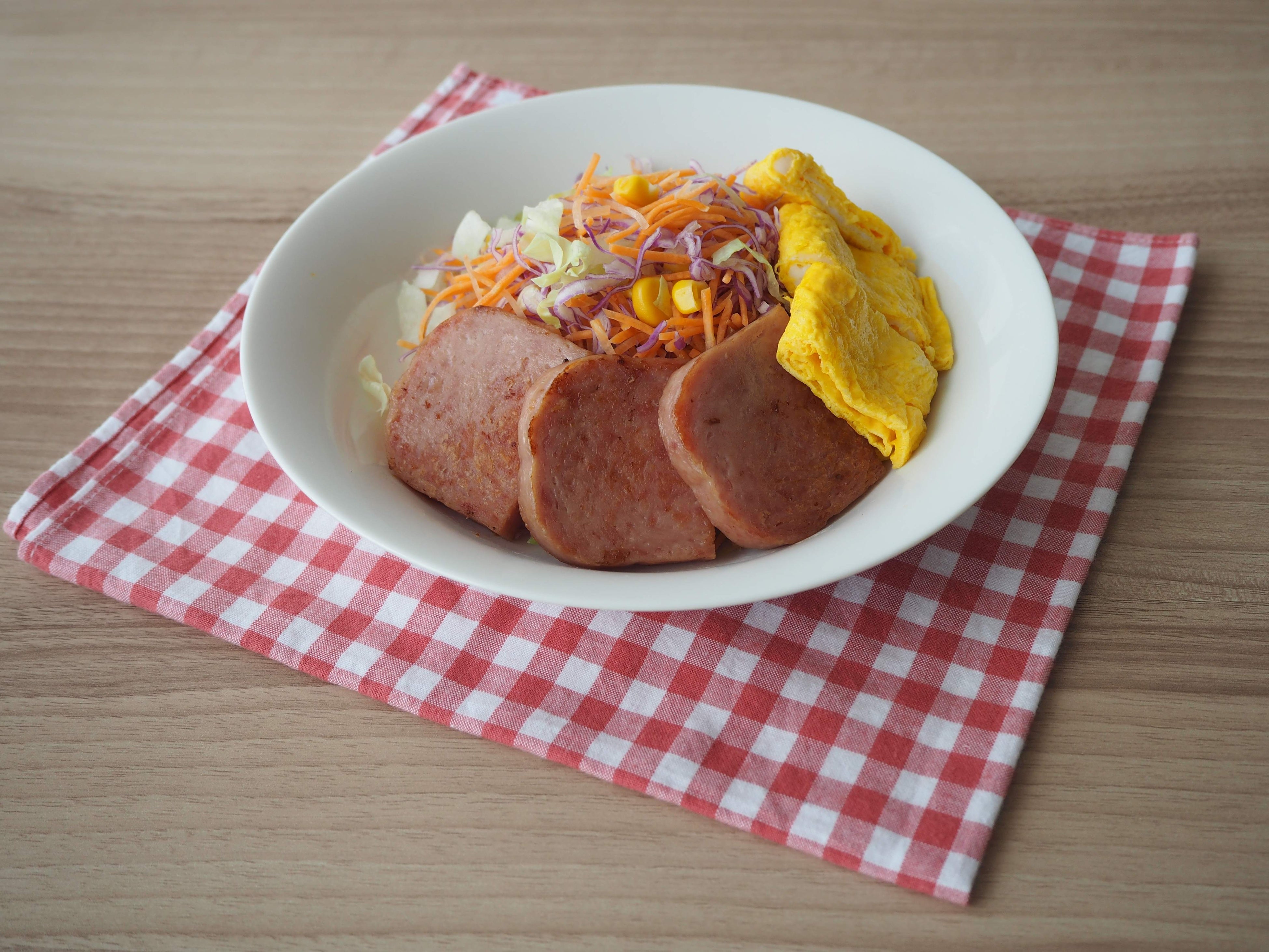 - ポークたまごと津堅島産にんじんのサラダプレート