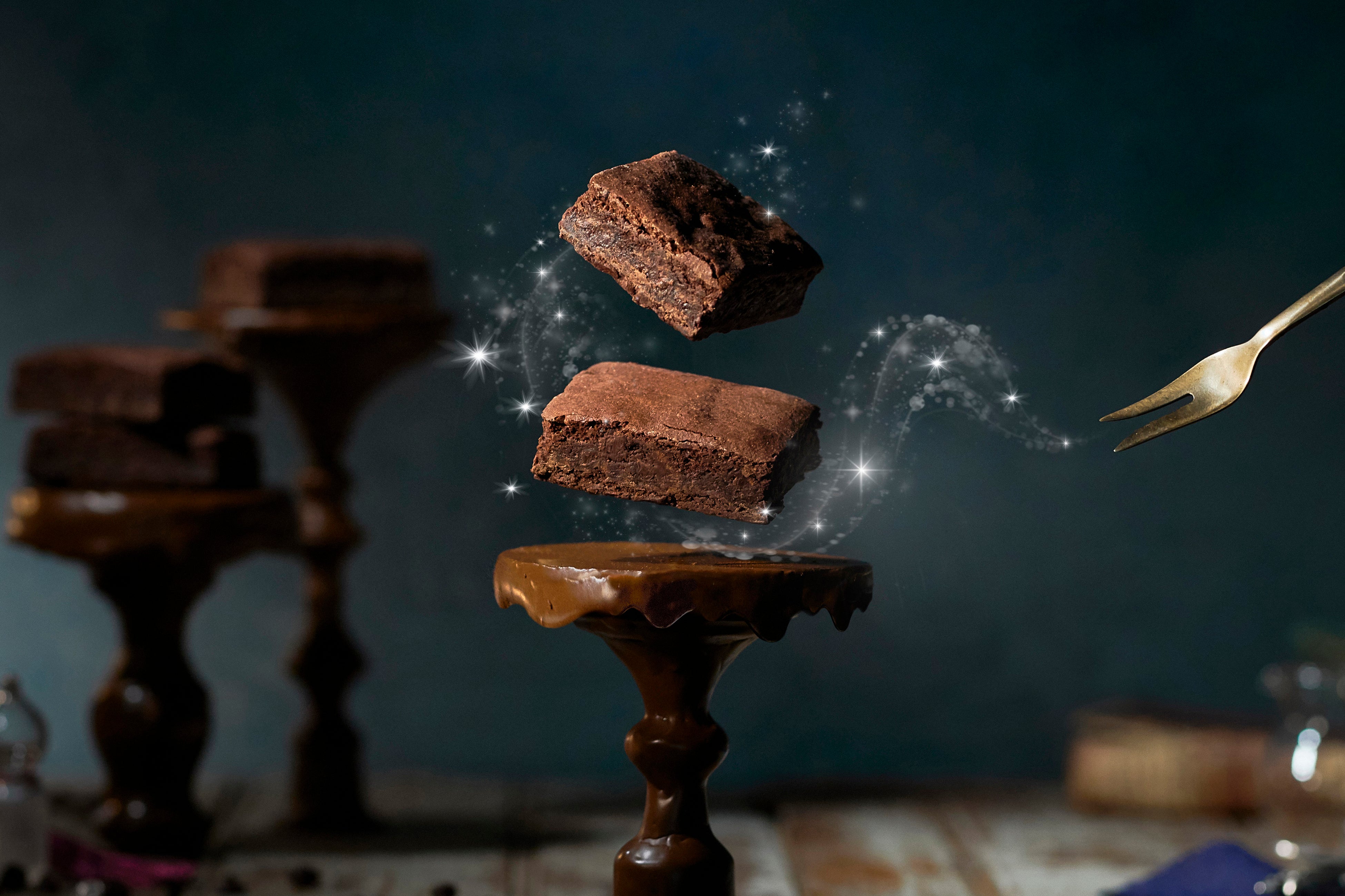 - ブラウニーにごろごろ入っているチョコチップと合わさって、今までにないような”新食感おやつ”としてお楽しみいただけます。
