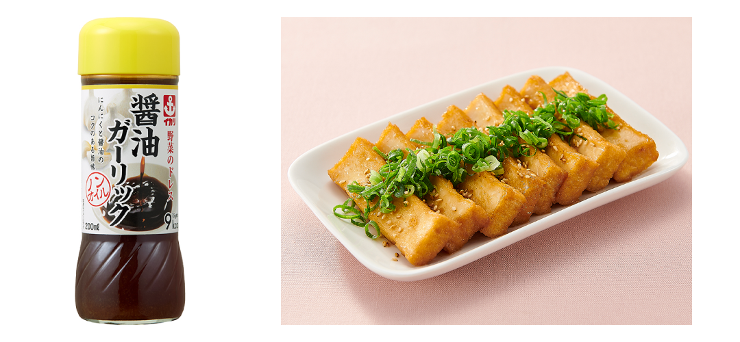 (1)醤油ベースにガーリックを効かせ、しっかりしたコクを感じられる和風にんにくドレッシングです