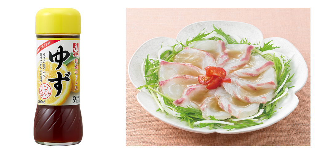 (1)爽やかなゆずにかつおの旨味を効かせた和風ドレッシングです