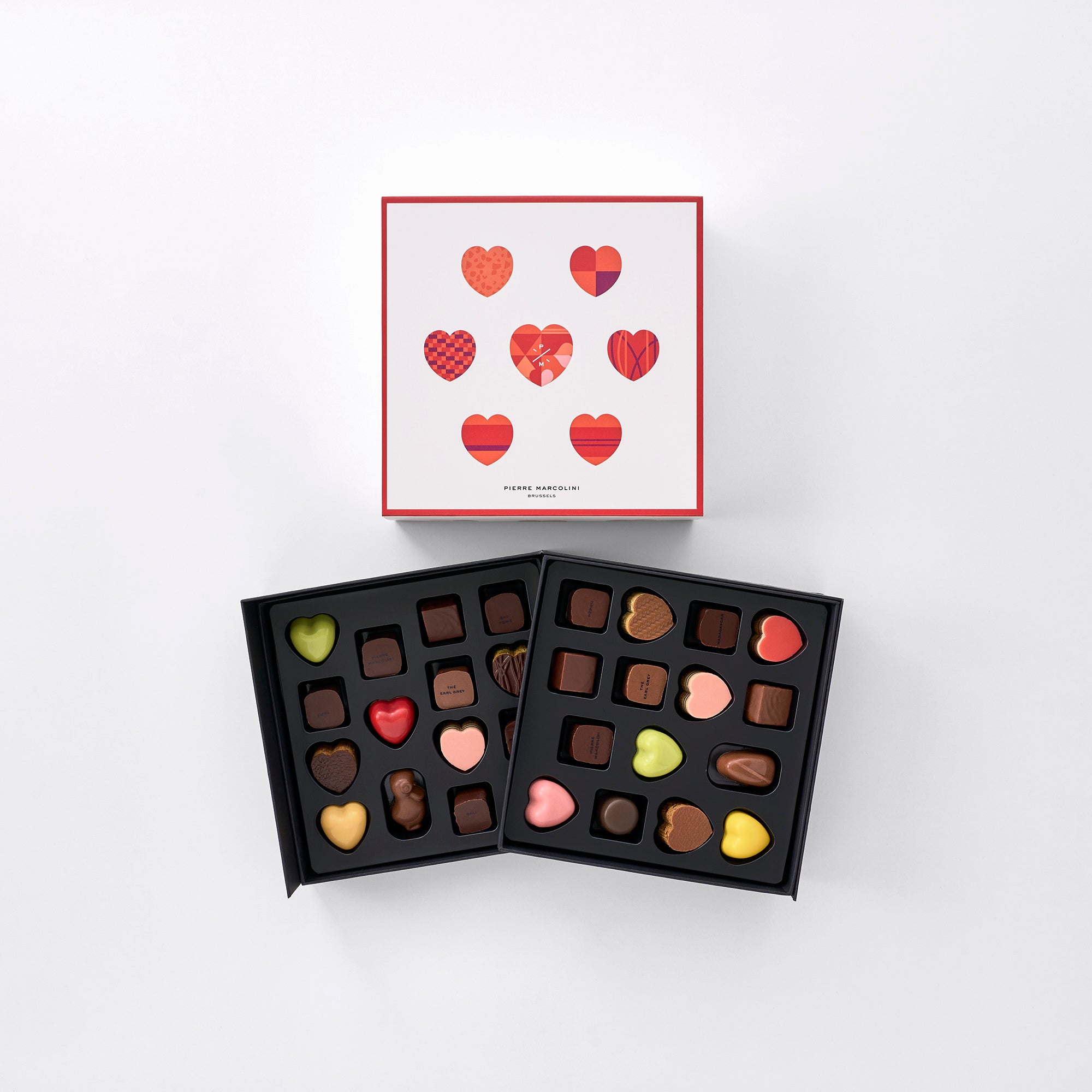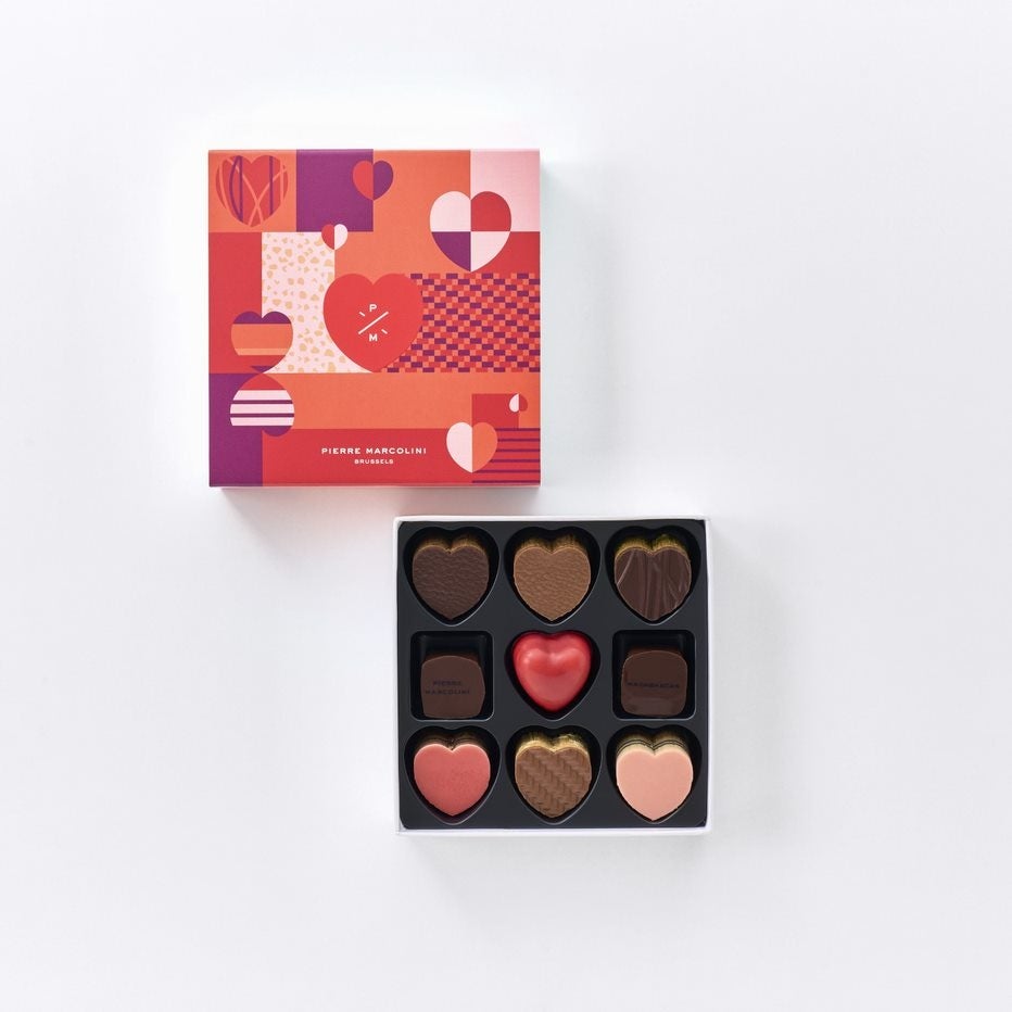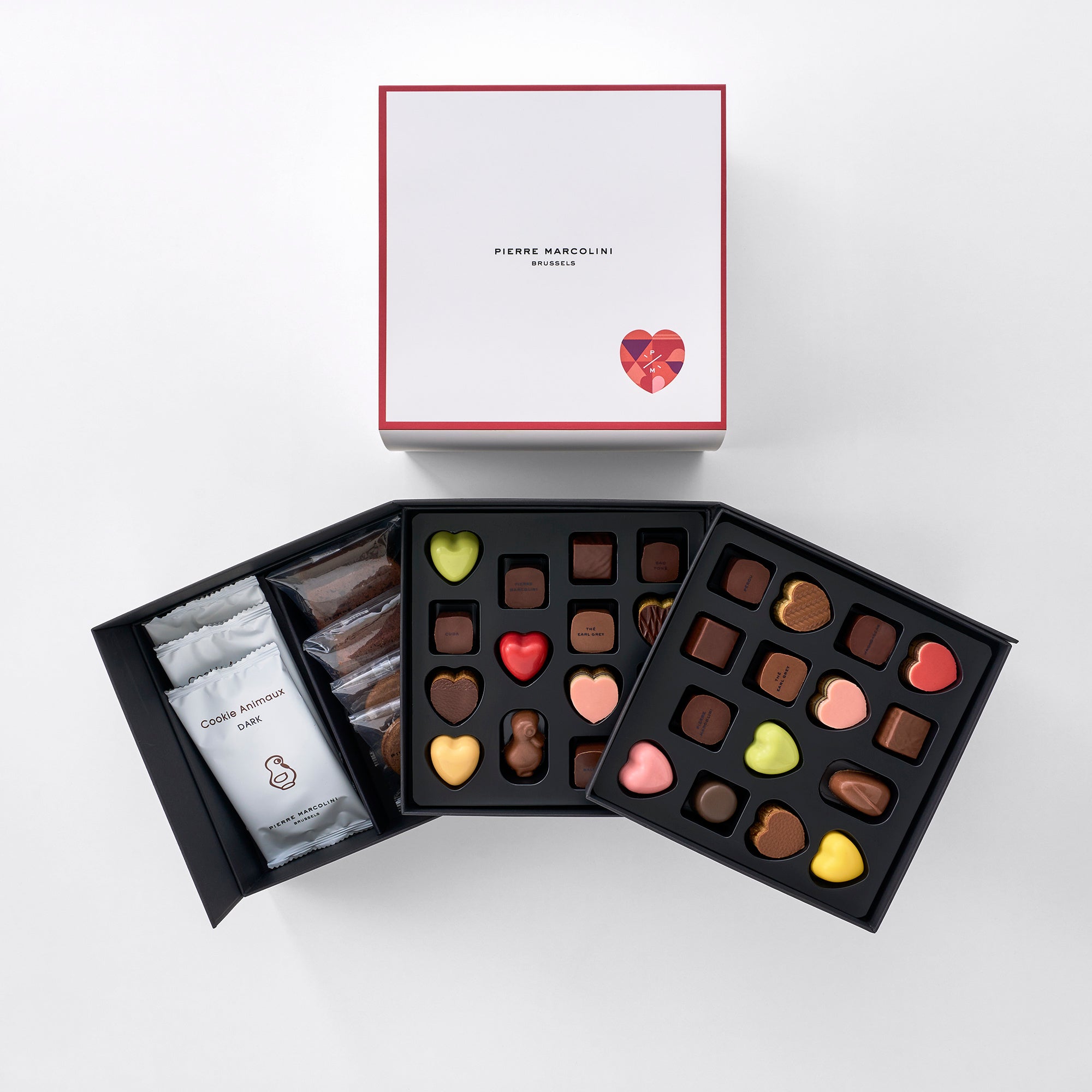 今年のバレンタインコレクションのテーマ「Touching hearts」のモチーフのパッケージに、新作の「レ クール ヌーヴォ」シリーズを6種と、ブランドを代表する赤いハートの「クール フランボワーズ」やこだわりのカカオを使用した「グラン クリュシリーズ」などを詰め合わせたアソートメント。