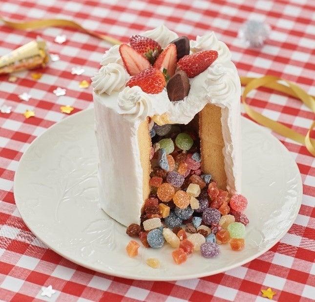 バウムクーヘンの中にお菓子を入れて楽しめる「かくれんぼケーキ」