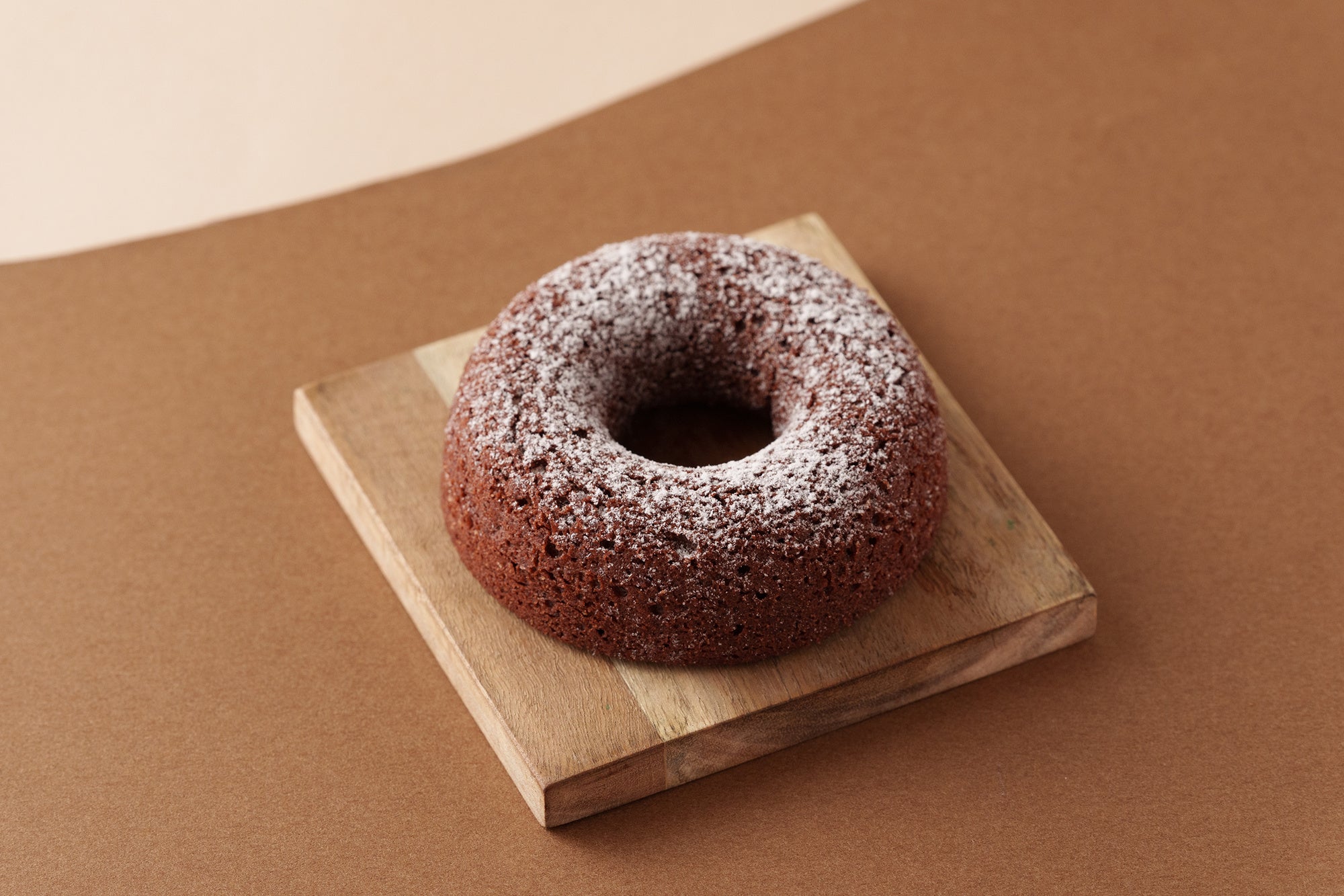 ドーナツ生地にオーガニックのチョコレートとココアを混ぜてオーブンで焼き上げた、チョコレートケーキのような焼きドーナツ。