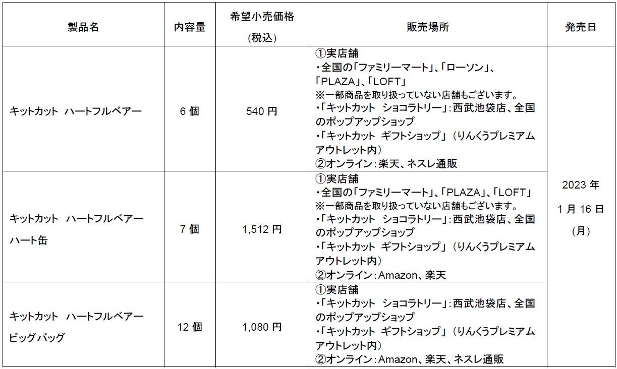 2023年のバレンタインシーズンは、昨年以上の盛り上がりが期待されており、様々なお客様のニーズに対応するため、「キットカット ハートフルベアー」に、新たな2つのラインアップを加えて発売します。