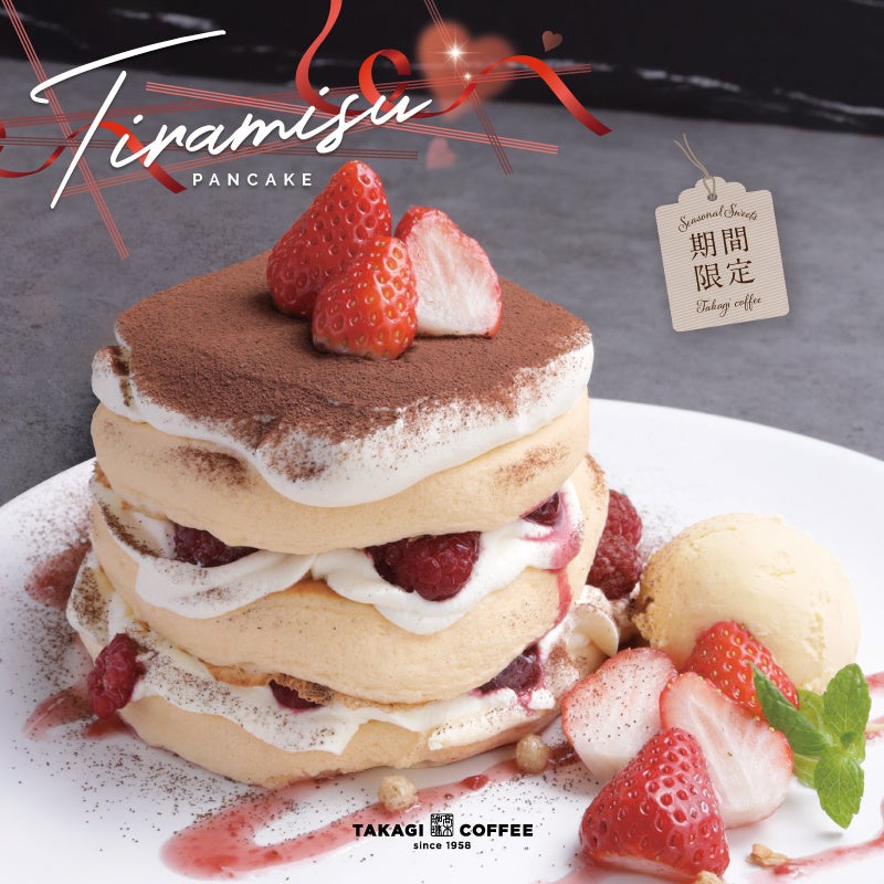 今年のバレンタインパンケーキは『苺とミックスベリーのティラミスパンケーキ』です。
