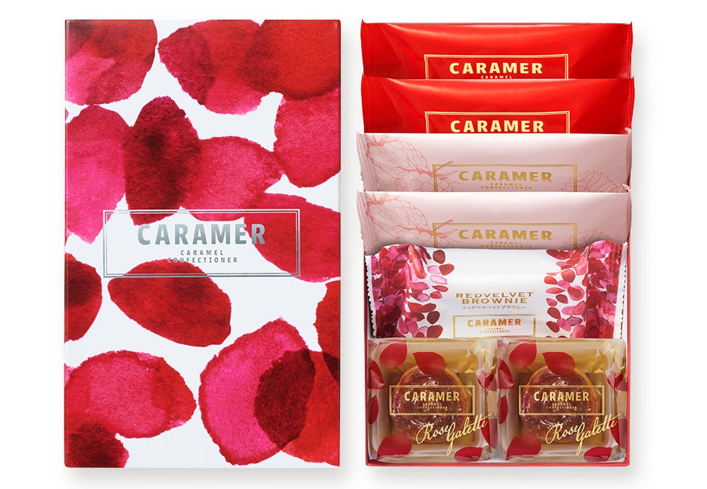 レッドベルベットブラウニーの深紅色を表現した花びらで彩った、華やかな限定パッケージはバレンタインの贈り物に華をそえます。