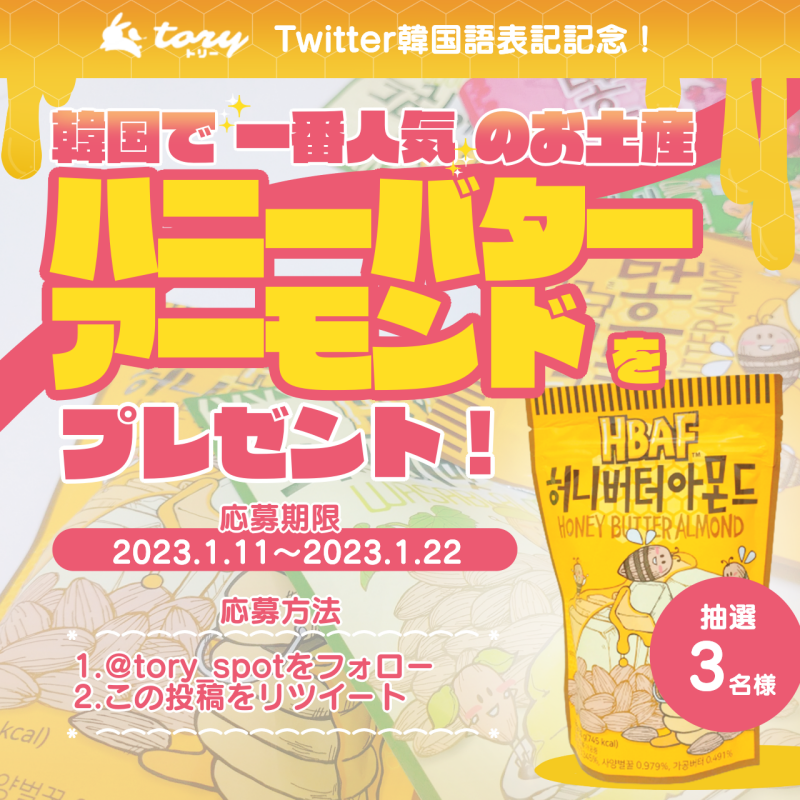 この度、韓国語表記を記念して、韓国の人気No.1お土産「ハニーバターアーモンド」をプレゼントするキャンペーンを開始しました。