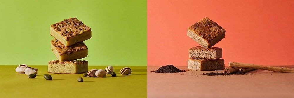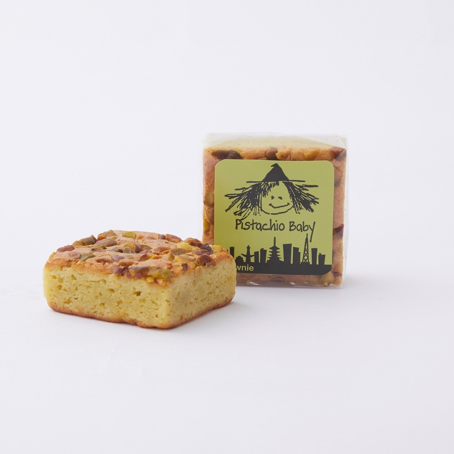 しっとりブラウニー生地にたっぷりのピスタチオペーストを練りこみ