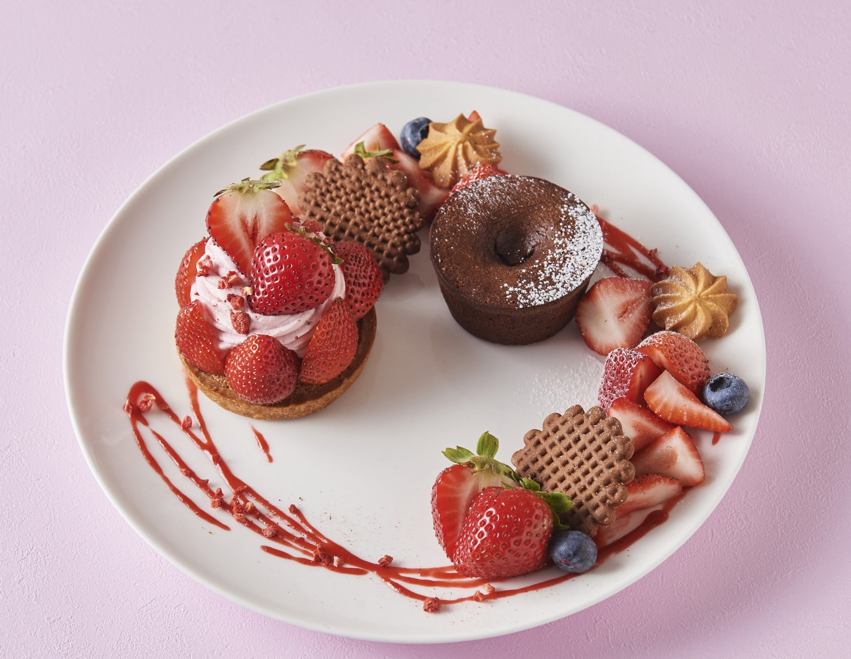 甘酸っぱく炊き上げたラズベリーペパンとフレッシュな苺を添えた「ストロベリーラズベリー」。フランス産マロンクリームとビターなココアを合わせた「ショコラマロン」は京都髙島屋限定です。※②のみ京都髙島屋限定 販売期間:2月1日(水)~14日(火)