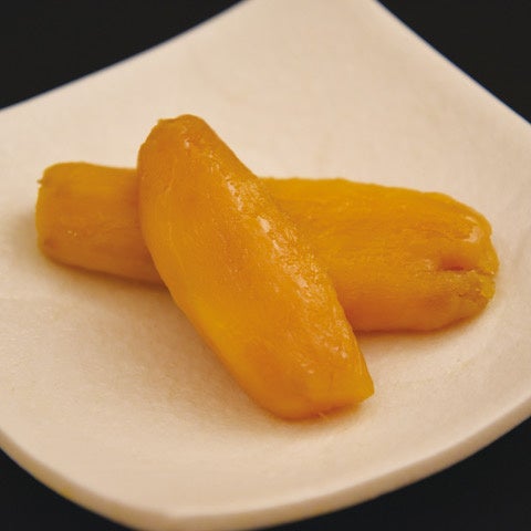 戦後の大阪阿倍野に焼き芋屋として創業して以来、さつまいもにこだわった芋菓子を作り続ける<芋菓子匠 嶋屋>。行列ができる看板商品の大学芋「名物あべのポテト」が登場します。大ぶりにカットした九州産「シルクスイート」など、糖度の高い国産さつまいもを綿実油でじっくりと揚げ、秘伝の特製氷砂糖蜜をたっぷりとしみ込ませた贅沢な大学芋。しっとりとした食感と、意外にもすっきりとしたほどよい甘さがあとを引きます。ほかにも、低温で揚げた鹿児島県産「紅はるか」に特製蜜と塩昆布パウダーをかけた超極細の芋けんぴ「100日ポテト」も並ぶので、こちらも要チェックです。