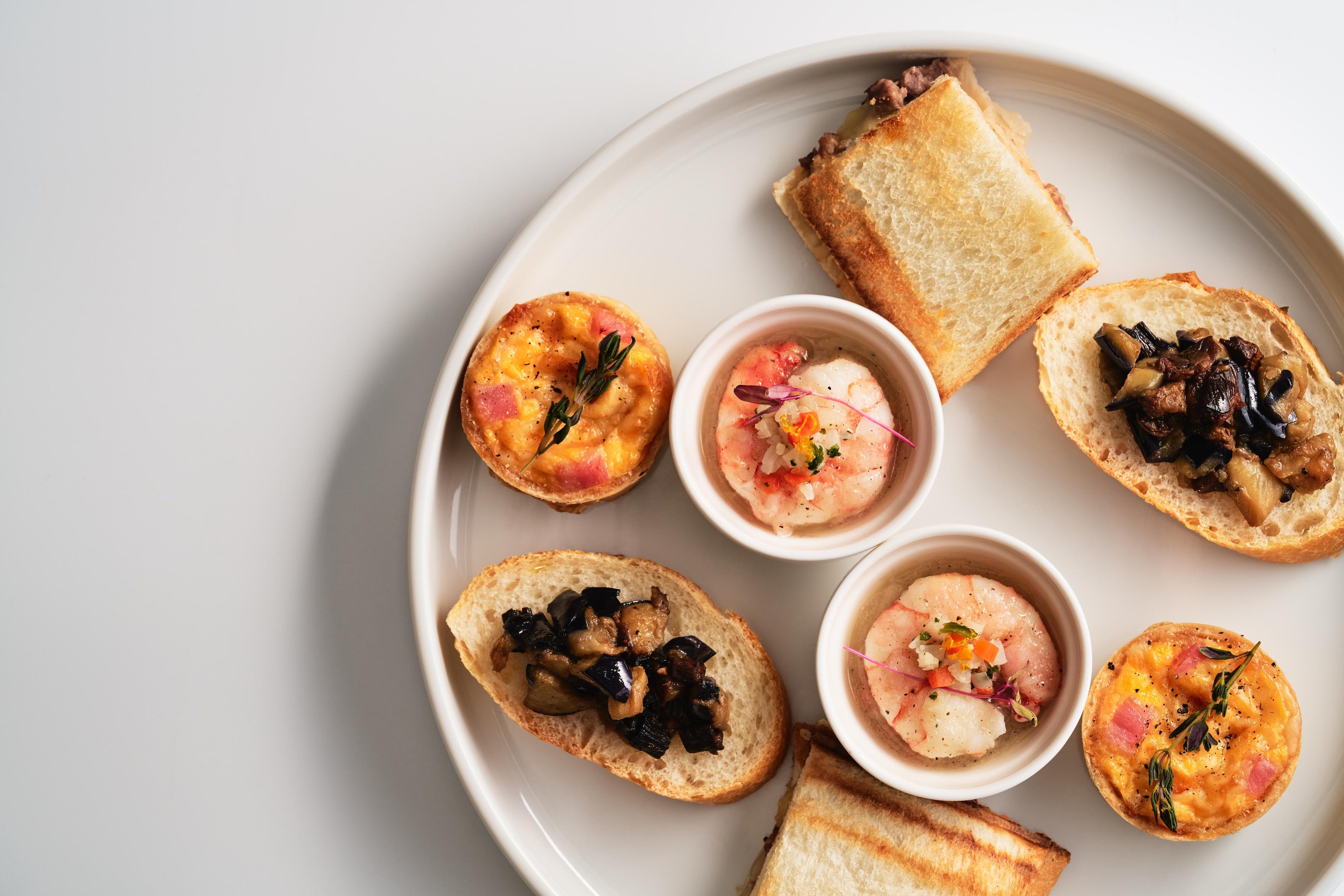 プティフール5種類と、ポルチーニ茸や天然エビ、自家製コンビーフ等素材の持ち味を生かした