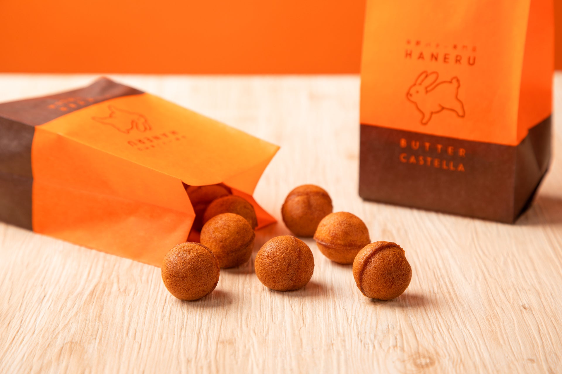 バターカステラが焼きあがった後、ぴょんぴょんと宙を舞うように跳ねるカステラはまるで兎のようです。