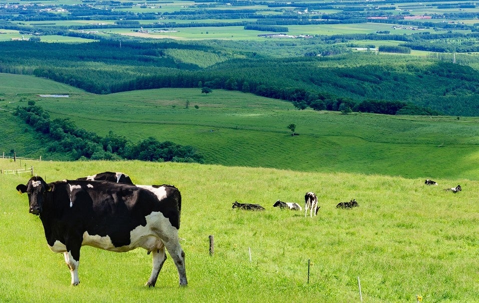 ① 広大な自然に囲まれて育った健康な牛から頂いた乳を使用しています。