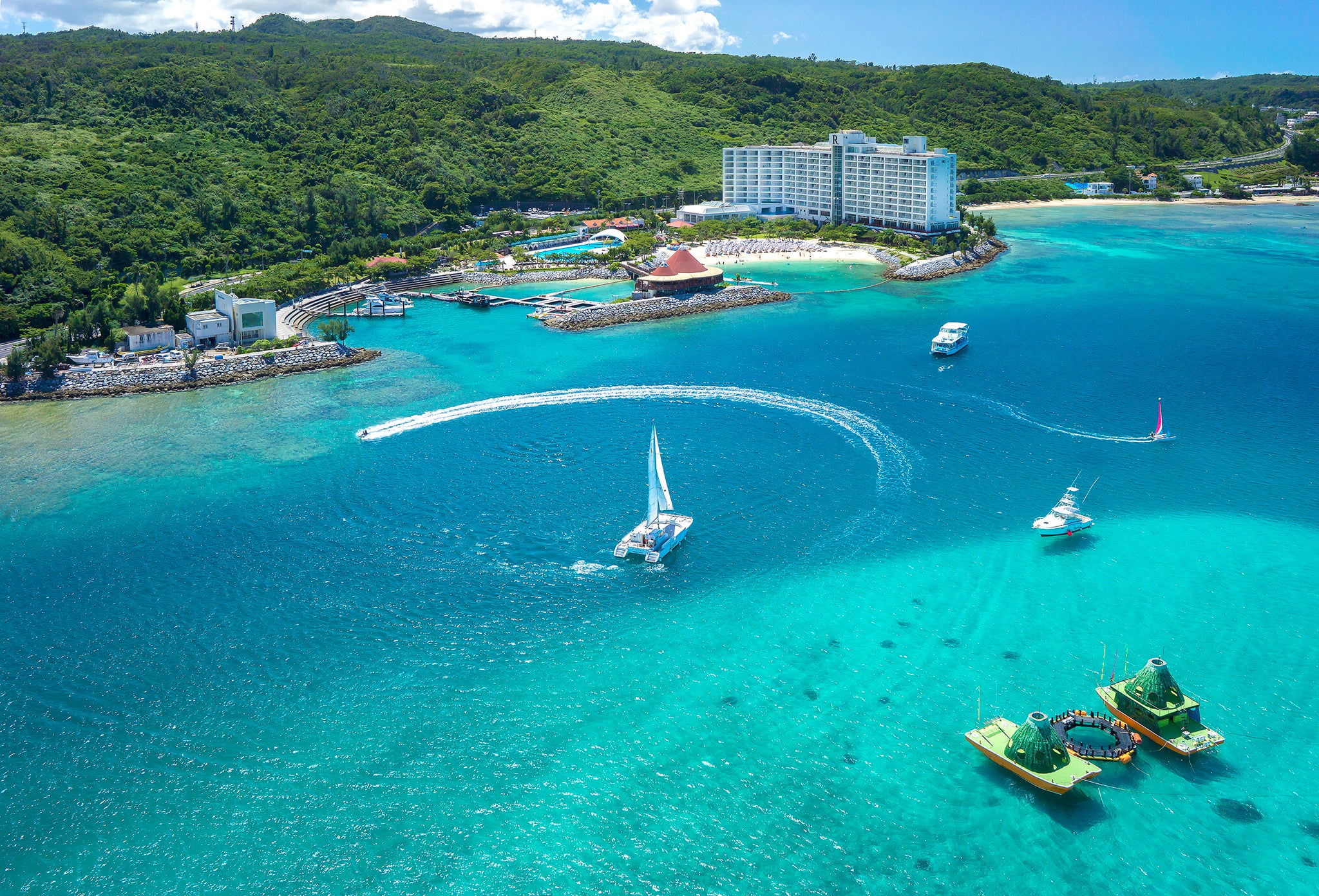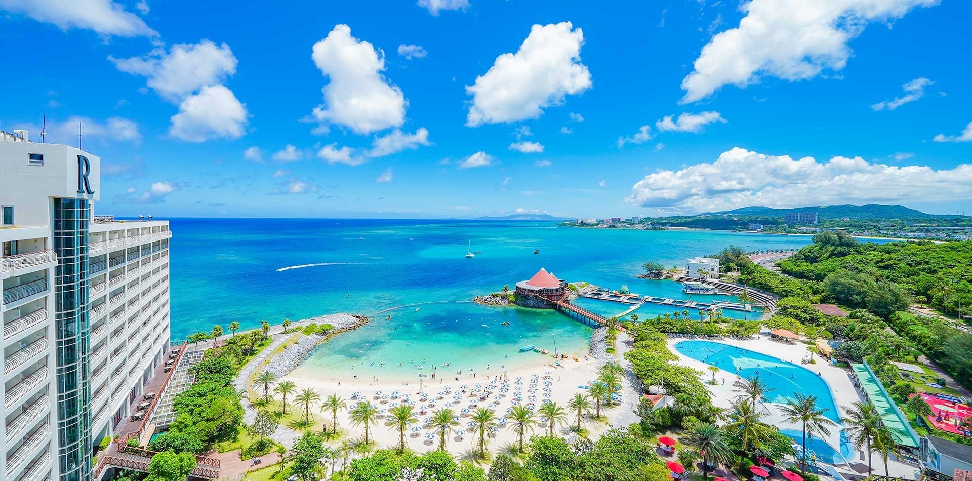 エメラルドグリーンの海と白い砂浜が広がる、全室オーシャンビューのエンターテイメント・ビーチリゾート。ヨットセーリングやパラセーリングなど、50種以上のマリンスポーツ、ラグーンに暮らすイルカとふれあうドルフィンプログラム、キッズお仕事体験、タラソテラピーサロン、山田温泉、個性豊かなレストラン&バーなど、大人から子供まで豊かな自然の中でリゾートライフが楽しめます。