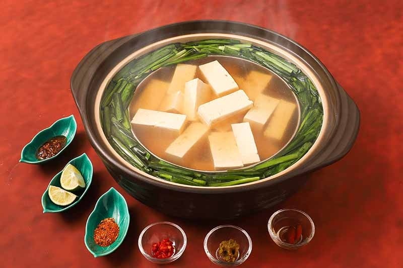 魚のあらで取ったスープと島豆腐、ニラを組み合わせさっぱりと仕上げました。島薬味で味の変化が楽しめます。
