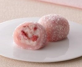 フリーズドライのイチゴ入りみるく餡を求肥で包みました。