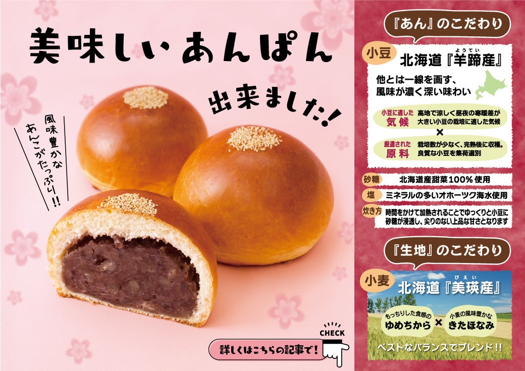 北海道産小麦を使用した生地に北海道ようてい産小豆を使用した小倉あんをたっぷり包んだ粒あんぱんです。