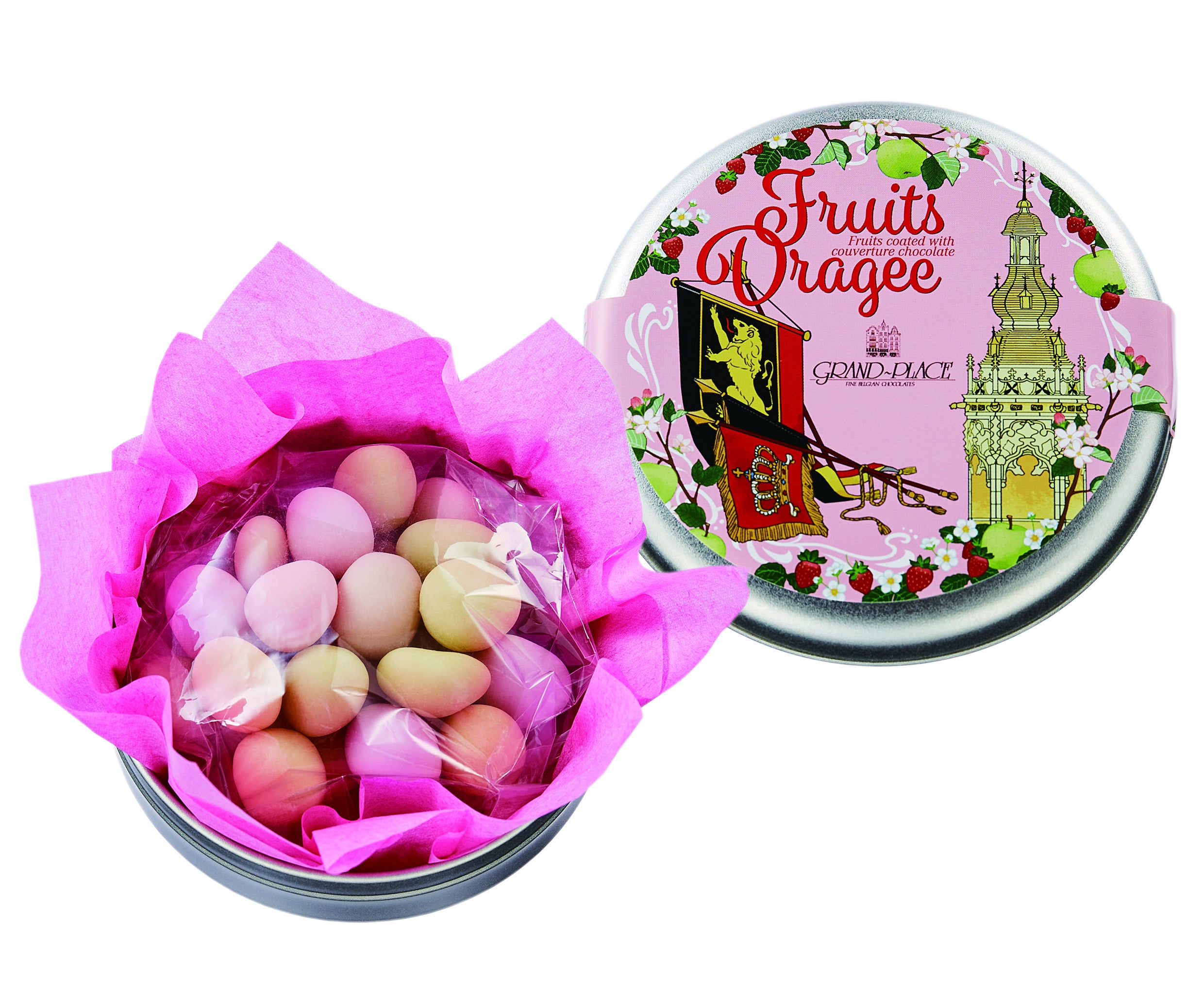 バッグに入れても邪魔にならないサイズの華やかな柄と色づかいの缶に詰められた、パステルカラーがキュートでスイートなフルーツドラジェは見ても食べてもハッピーになれます。