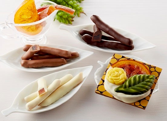 ベルギーと日本の秀逸な素材を使用した伊予柑ピール・柚子ピール・檸檬ピールはひとくちで爽やかな香りが口いっぱいに広がります。 酸味のアクセントが絶妙なスペイン産バレンシアオレンジにホワイトチョコを纏わせたオレンジコンフィは、オレンジの香りとショコラのハーモニーが絶妙です。