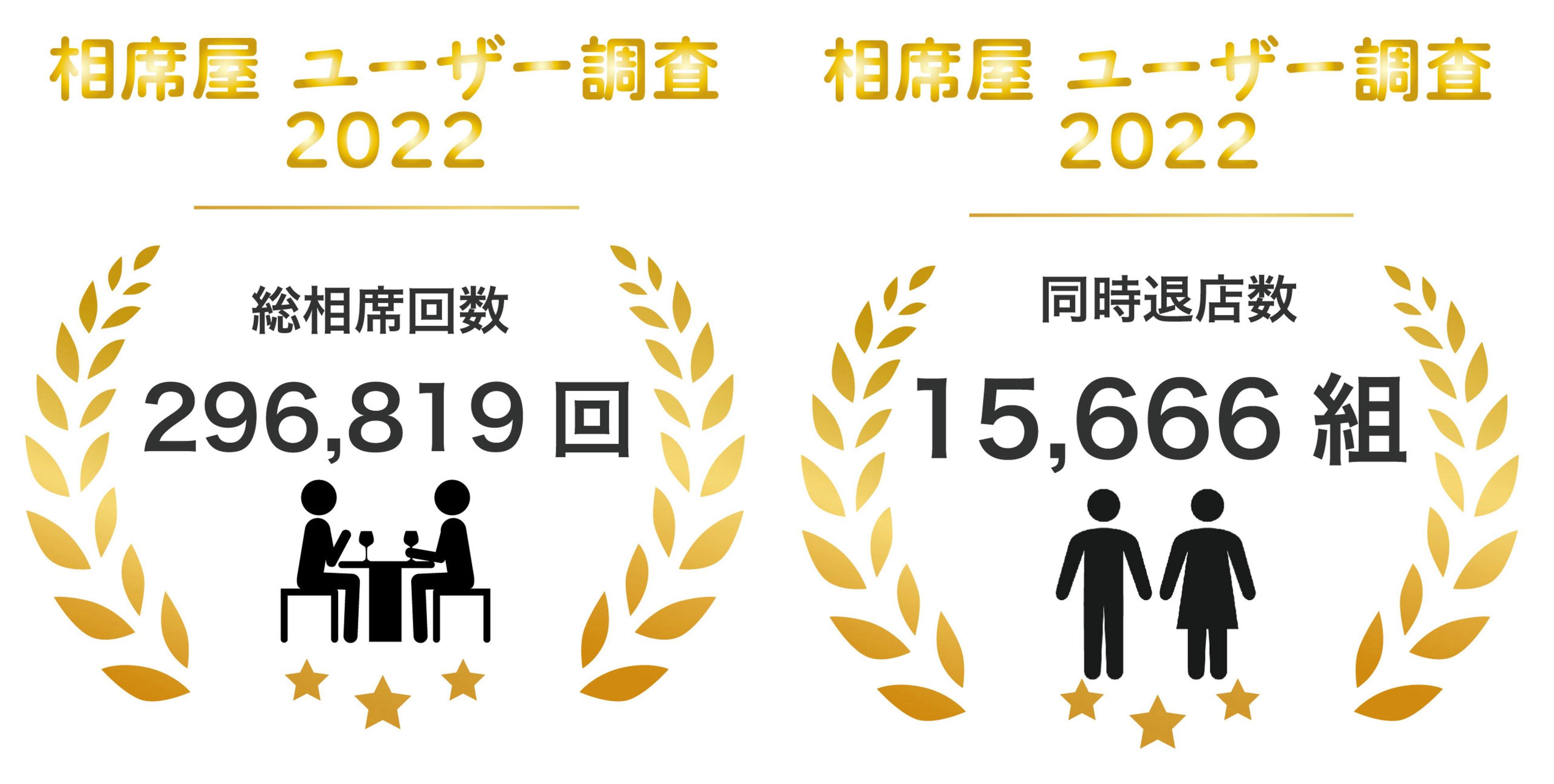 2022年12月の相席屋は、総相席回数296,819回、総同時退店数15,666組を突破いたしました。(2021年度〜2022年12月までの合計数)