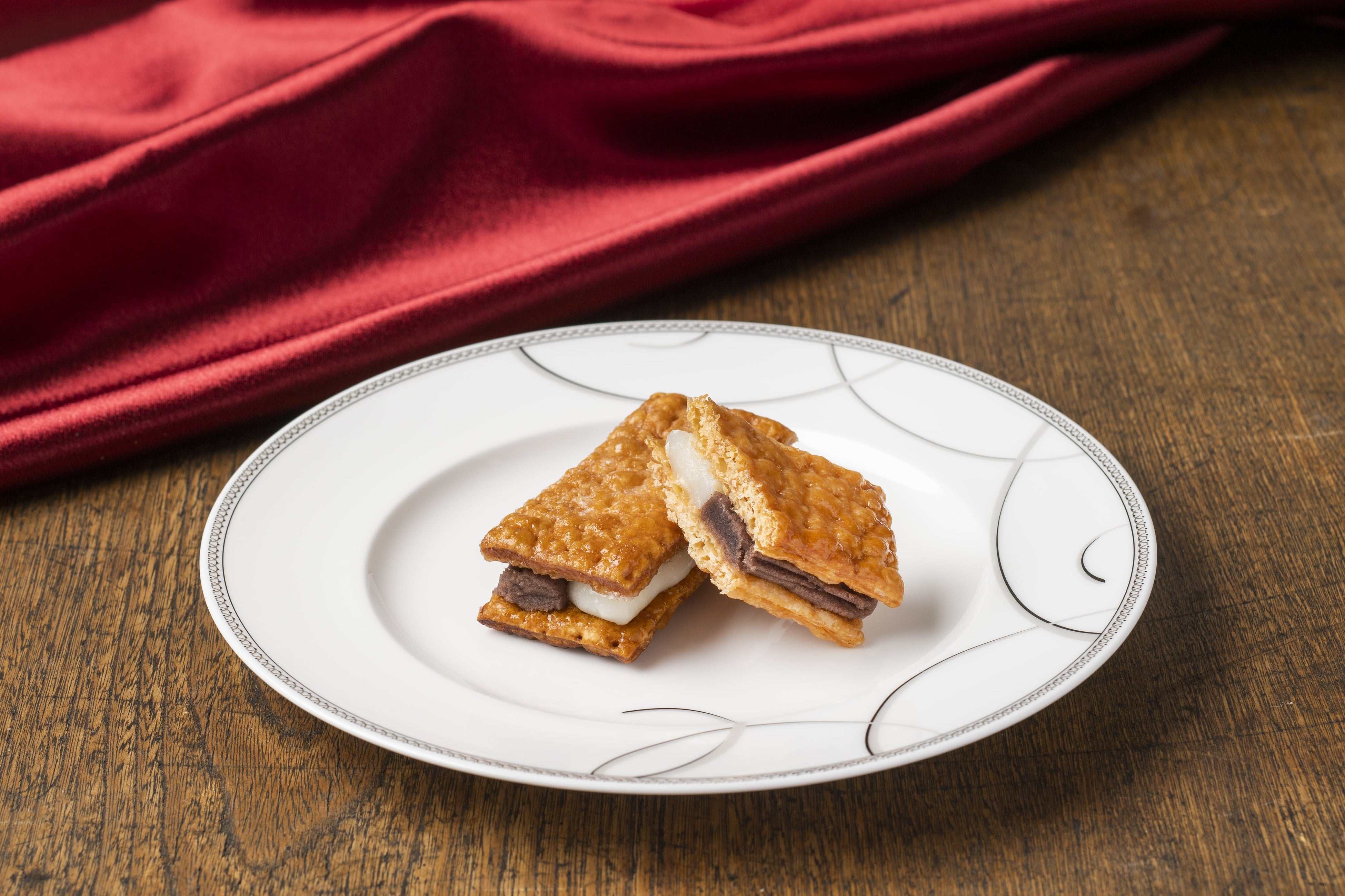 さくさくに焼き上げたパイに、もちもちの求肥風フィリングとみずみずしくスッキリとした甘さのこし餡をサンドしました。